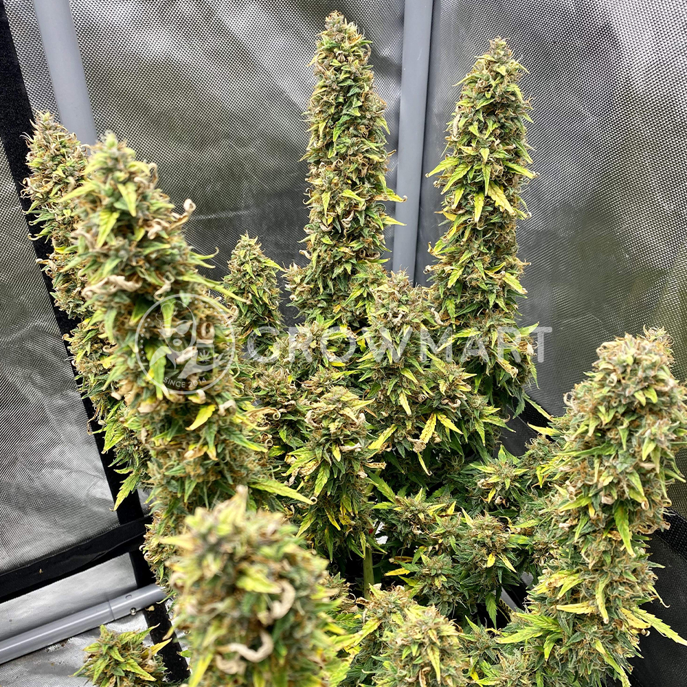 A real speed demon, this sensational specimen will flower in just 70 days after planting. Easy to adjust, this girl makes harvesting synchronised. Later, its effervescent effects gently pamper you into an extremely calm state of mind.