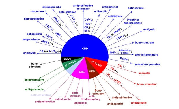 Cannabidiol (Cannabidiol, CBD) belongs to a group of substances called cannabinoids, which occur naturally only in cannabis plants. CBD is the second most important of these after THC. Unlike THC, research into CBD and its positive effects on the human body has been unjustly neglected in the past. In recent years, however, it has come to light that it has very interesting pharmacological effects. Chemically, CBD and THC are closely related, but CBD is not a resinous liquid but a solid. CBD is non-psychoactive, i.e. it has almost no effect on human cannabinoid receptors and acts as an inhibitor of many of the effects of THC.