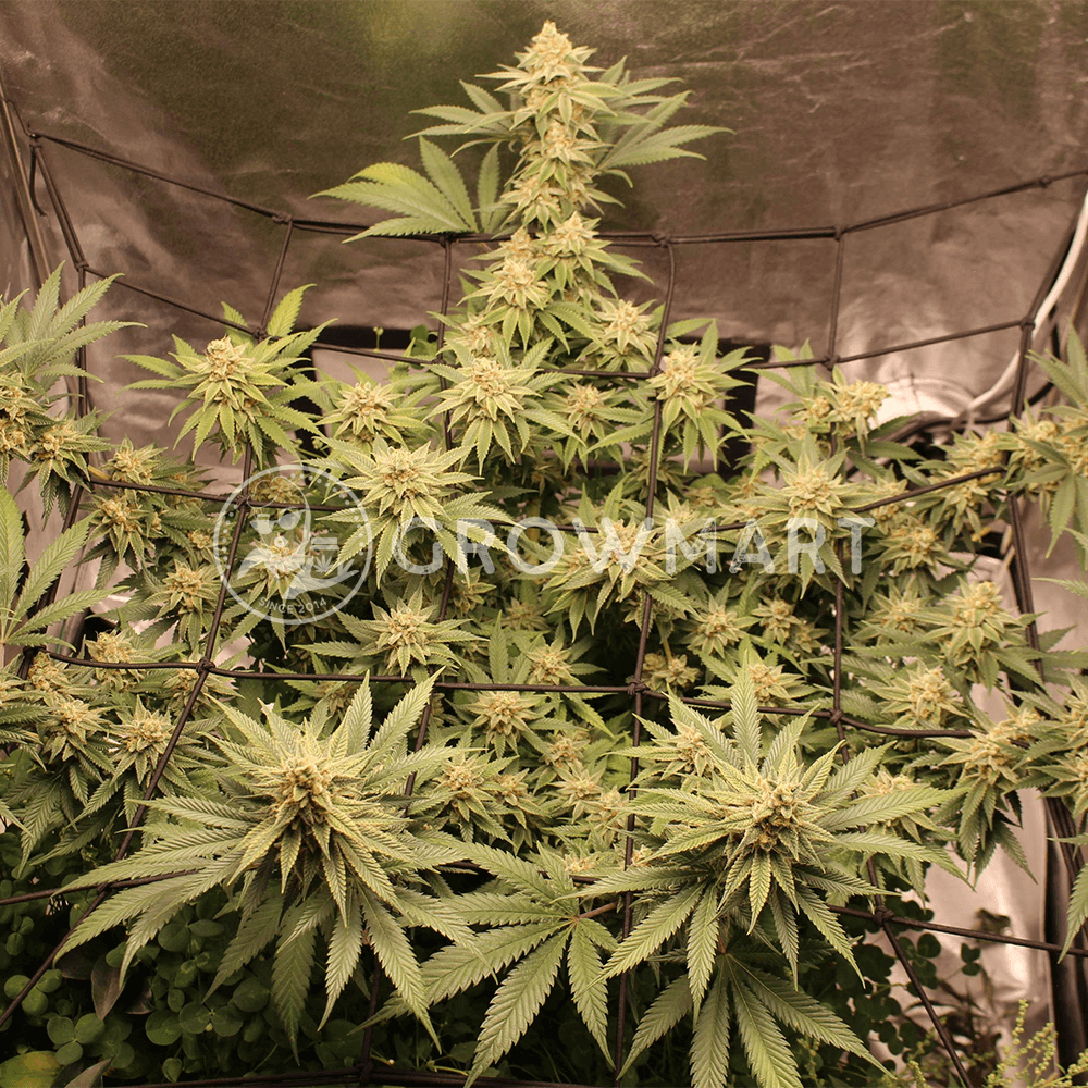 Most phenotypes start budding early in the flowering phase, usually after 2 to 3.5 weeks. They also start producing trichomes very quickly at that time. After a good month of flowering, the buds are already full of resin. Even the leaves seem to be under snow. When you touch the plants, your hands and fingers will go numb and you will understand why we called this strain Sugar Bomb Punch. Some plants can be ready in 7.5-8 weeks, these are the fastest phenotypes. Others really need at least 8.5 to 9 weeks. Most plants remain fairly compact, so it is advisable to take this into account.