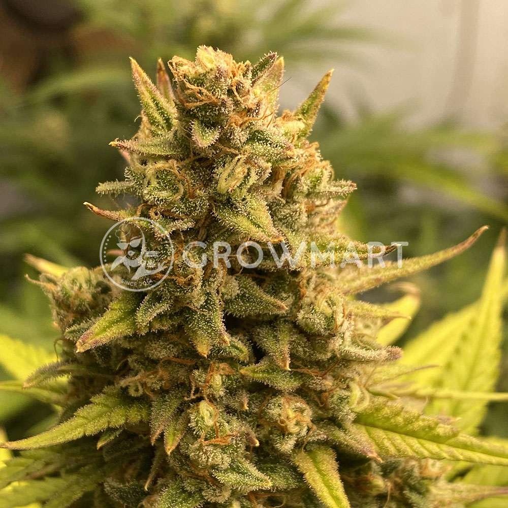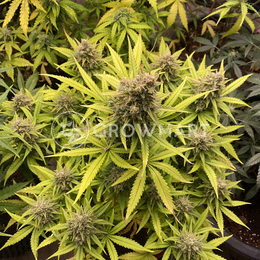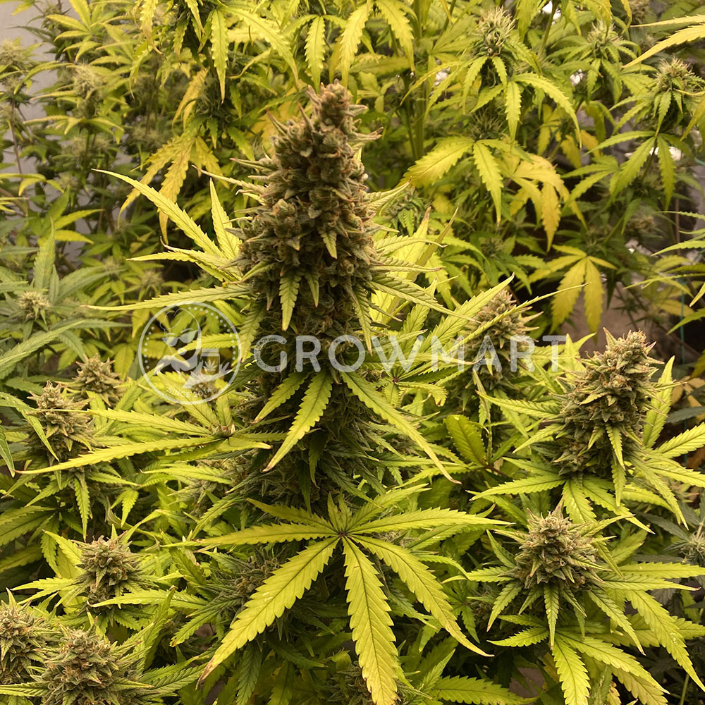 This strain grows quite tall in self-flowers and develops a tall main stem that reaches up to 130 cm, surrounded by several side branches. These grow upwards at different heights, giving it a pine-like structure. You can expect a dense plant with relatively small fan-shaped leaves and long branches that are completely enveloped in extremely dense buds. They can produce up to 550g/m2, which is great for all types of growers looking for a top row harvest product without much maintenance or extra effort.